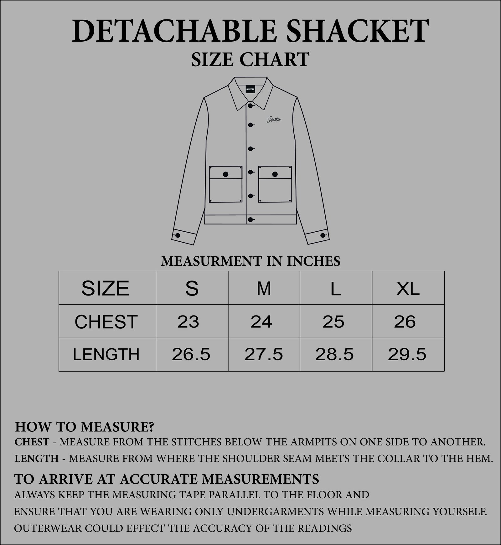 SIZING : GARMENT MEASUREMENT IN INCHES